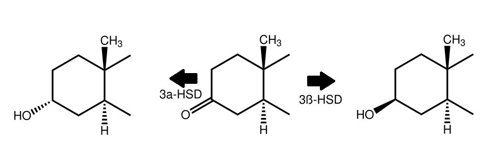 Gli esseri umani esprimono 4 diversi cosiddetti isoenzimi che possono catalizzare la riduzione 3α [7]. Questi isoenzimi sono denominati da AKR1C1 a AKR1C4. Tutti sono in grado di catalizzare la riduzione 3α, ma differiscono per la distribuzione tissutale e la specificità del substrato. Questo è in netto contrasto nel ratto, che esprime solo un singolo enzima in grado di ridurre il 3α. A causa della presenza di più enzimi in grado di catalizzare la riduzione del 3α, nonché del fatto che il singolo nei ratti non è identico a nessuno dei 4 isoenzimi nell’uomo, è necessario prestare molta attenzione quando si estrapola un dato dai ratti e lo si trasferisce all’uomo.