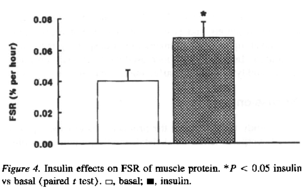 Come ho già riportato in passato, la somministrazione di Insulina esogena capace di creare un livello ematico oltre i 1.200pmol/lt ha effetti significativi e tangibili sulla sintesi proteica muscolare. Ma non si esaurisce tutto a meri e limitati numeri statistici.
