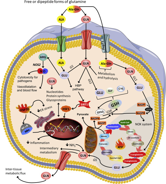 Fino al 13% della Glutammina circolante tende a essere reindirizzata al letto splancnico per essere utilizzata come substrato energetico dal fegato e dagli enterociti intestinali.[12]